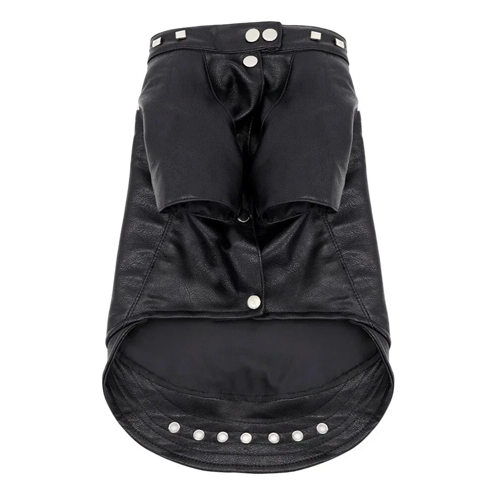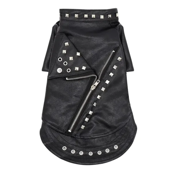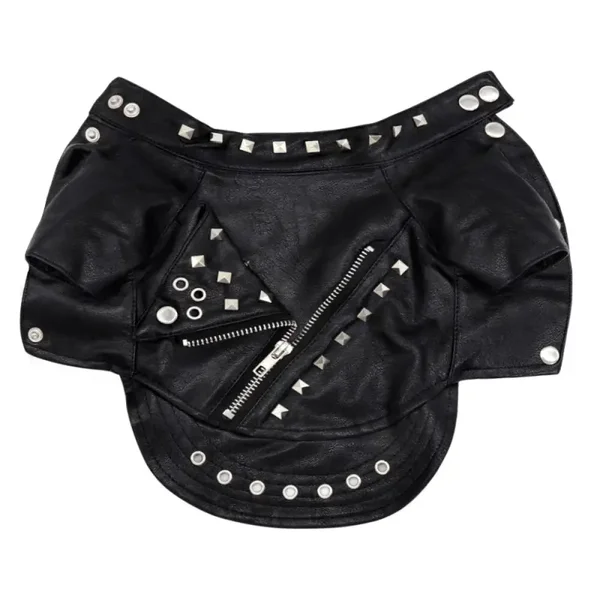 Campera estilo rockero, imitación cuero con tachas y cierres metálicos.